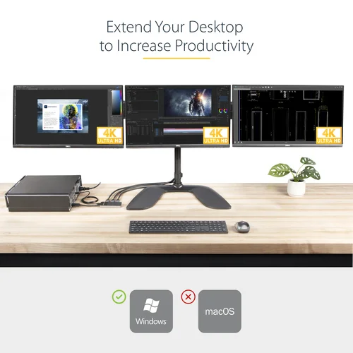 Connect three 4K monitors to your DisplayPort device for enhanced productivity with this multi-monitor video splitter.