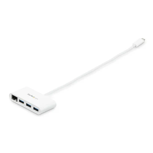 Turn a USB Type-C port on your laptop into three USB Type-A ports (5Gbps) and one GbE portHere’s a must-have accessory for your USB-C™ equipped MacBook Pro, Chromebook™ or laptop. This USB 3.2 Gen 1 hub merges your USB peripheral and RJ45 network connections into a single combination hub. It gives you two vital connection types, with Ethernet and USB Type-A, which are often missing from modern laptops.Easily connect to your network and peripherals through USB-CThis 3-port USB hub features an easy-to-use USB-C connector. USB Type-C connectors are easier to insert than past generations. They're small and reversible, and you can connect the plug with either side facing up.Merges two vital port types into one stylish hubIf your MacBook or laptop is missing the ports you need, this hub can help. known as USB 3.2 Gen 1. The versatile USB 3.2 Gen 1 hub gives you access to not only your USB peripheral devices but also a wired internet connection. It offers a Gigabit Ethernet port, so you can connect to a network in locations where Wi-Fi® is unreliable or unavailable.The stylish USB hub features an attractive white finish.Rugged, portable, and bus poweredThe hub features a rugged yet lightweight housing, so there’s no need to sacrifice dependability for portability. Its USB-powered design means you don’t need to carry a separate power adapter, so you can tuck the USB 3.2 Gen 1 hub neatly into your travel bag.This hub is perfect for travel, and it takes up minimal space on a desk, so you can use it in hot-desk or BYOD (Bring Your Own Device) environments.Built-in cable eliminates aggravationThe hub’s built-in USB-C cable makes connections easy, and you don’t need to carry a separate cable to attach the hub to your laptop.The HB30C3A1GEA is backed by a StarTech.com 2-year warranty and free lifetime technical support.The StarTech.com Advantage