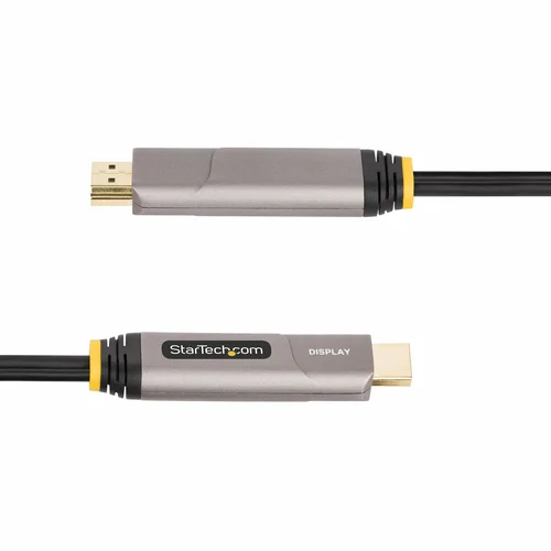 Connect a USB-C video source to an HDMI display, with support for HDR videoConnect a 4K 60Hz HDMI display to a DP Alt Mode-enabled USB Type-C source up to 30 feet (9.15 meters) away with this USB-C to HDMI Active Optical Cable.Designed for Long RangeThe USB-C to HDMI Active Optical Cable is designed for long-distance connections to overcome the limitations of standard copper cables. Its fiber optic inner core reduces electromagnetic interference (EMI), ensuring optimal signal quality with minimal signal degradation. EMI shielding reduces noise and improves signal clarity and stability.Integrated Adapter Cable with HDRThis cable integrates a video adapter and cable, minimizing points of failure and signal loss. The HDMI Connector has a built-in 1.4ft (43.5cm) USB Type-A power cable, which is required to connect to an available USB port or USB wall charger (not included). HDR support includes 8/10bit RGB and YCbCr 4:4:4 for accurate color reproduction.No Drivers or SoftwareUniversal Adapter Cable does not require additional drivers or software installation. Compatible with all hardware platforms and operating systems including Windows, macOS, ChromeOS, and Linux. This USB Type-C to HDMI Adapter Cable works with laptops and devices that support USB-C DP Alt Mode, USB4, Thunderbolt 3, and Thunderbolt 4.Durable Optical CableThe OM3 multi-mode HDMI fiber optic cable features a durable PVC jacket, strain relief, and active booster for reliable transmission over long distances. This cable is lightweight, making it easy to route through walls or cable runs, store when not in use, and transport when needed.The StarTech.com Advantage