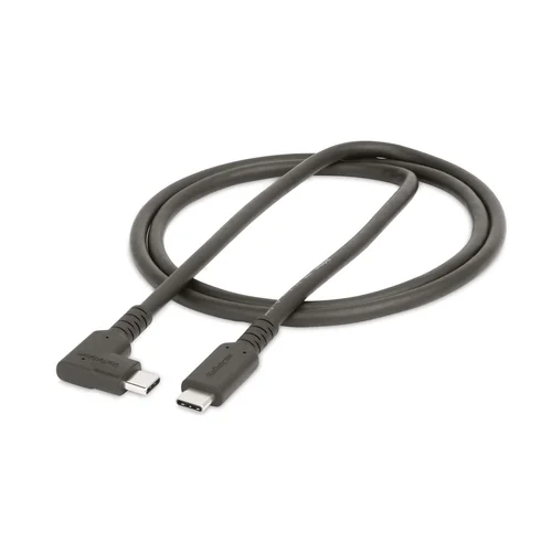 Connect and charge USB Type-C devices with a rugged right-angle USB-C CableConnect USB 10Gbps source and peripheral devices, using this 3.3ft (1m) Rugged Right Angle USB Type-C Cable. Position the right angle USB-C connection along the device to reduce cable clutter and avoid prolonged strain from bending.It is ideal for 10Gbps data transfer to external USB-C-enabled external storage devices, or as a single-cable connection from a USB-C dock to a laptop.Experience 4K Video with DisplayPort 1.2 Alt ModeThe Rugged USB-C cable supports up to 4K 60Hz video over DisplayPort 1.2 Alt Mode, and is compatible with 1080p and lower resolutions.Enhanced DurabilityDesigned to withstand heavy use, the USB-C cable features an Aramid fiber core and durable TPE outer jacket. This heavy-duty construction protects against fraying or breakage and resists tangling.Full-Featured USB-C Power and DataThis USB Type-C cable features Power Delivery (PD) 3.0 with up to 100W PD output. Power and charge a USB-C laptop, such as Apple MacBook, Lenovo ThinkPad, or Microsoft Surface with up to 100W output over USB Power Delivery 3.0. Connect the USB-C cable from a laptop to a USB-C wall charger or docking station.The StarTech.com Advantage