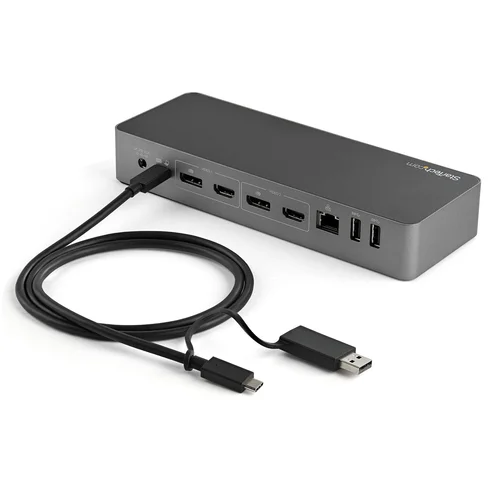 Hybrid USB Cable | USB C Cable (10Gbps) with USB A Adapter (5Gbps) | 2-Year WarrantyThis hybrid 1-meter USB-C™ to C, USB 3.2 Gen 2 (10Gbps) cable with attached USB-A to C, USB 3.2 Gen 1 (5Gbps) adapter lets you connect a USB Type-C™ device, such as a docking station, hard drive, tablet or mobile device, to the USB-C or USB-A port on your host computer. The cable is also compatible with Thunderbolt™ 3 ports.Note: When used with a USB-A host this cable will only work with docks that support DisplayLink.Charge your USB Type-C devices fasterWhen used with a PD 3.0 enabled USB-C power source, the 1-meter USB-C to C cable supports up to 100W (5Amps) of power to charge a USB-C or Thunderbolt 3 laptop, tablet or smart phone.Attached USB-C to USB-A adapter when paired with the USB-C to C cable also supports up to 15W (5V, 3Amps) of power to charge your devices from a USB-A wall charger, car charger or power bank -- perfect for people on the move, for providing simple, tidy connections.Connect your USB 3.2 Gen 2 peripheralsThe USB 3.2 Gen 2, USB-C to C cable offers 10Gbps data rate, enabling you to sync your USB Type-C devices in no time at all. You'll also be able to connect your USB 3 (3.0, 3.1 or 3.2) peripheral devices, such as hard drive enclosures and docks, to your USB-C or TB3 laptop.USB 3.2 Gen 1, USB-C to A adapter, when used with the USB-C to C cable, offers 5Gbps data rate. You can spend less time transferring and backing up your data from your USB-C devices to your USB-A host and focus more on your projects and presentations.Hybrid Docking Station cableUse this cable with your Hybrid USB-C Docking Station or USB-C Hub to connect your laptop, tablet, smart phone or portable drives. This cable also comes as an accessory for StarTech.com's Hybrid Dual Monitor (4K 60Hz) Docking Stations such as DK30C2DPEP, DK30C2DPPD, and DK31C3HDPD.The USBCCADP is backed by StarTech.com's 2-year warranty for guaranteed reliability.The StarTech.com Advantage