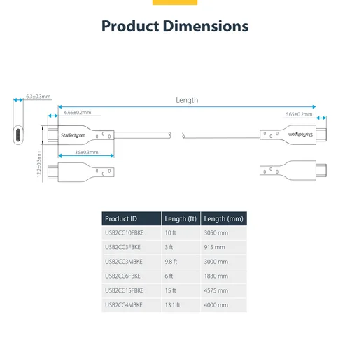 Connect a USB Type-C device to a USB-C wall charger or host computerSeamlessly charge a USB Type-C mobile device or transfer files to a USB-C host computer with this high-quality USB-C cable. The USB-C charger cord facilitates up to 60W Power Delivery and 3A output for fast charging. It supports USB 2.0 (480Mbps) transfer rates and is suitable for general use.Quality ConstructionDesigned for frequent charging, the USB-C Charger Cable features a rugged TPE outer jacket for increased wear resistance. Its flexible strain relief and nickel-plated connectors are designed to withstand over 10,000 insertion cycles, enhancing its durability and longevity.Charge Mobile Devices On The GoCharge a USB-C device with a USB-C wall charger, car charger, or power bank. The 3m (10ft) USB Type-C cable is the ideal length for charging where extra reach is required.Power a LaptopWith up to 3A of output, the USB-C Charger Cord supports up to 60W of Power Delivery to charge a USB-C laptop, or fast charge a tablet or smartphone. To use, connect the cable from a USB-C laptop to a USB-C wall charger.The StarTech.com Advantage