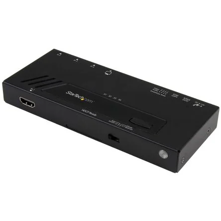 Create a powerful visual experience, with the ability to switch between four 4K video sources seamlessly. This 4-port HDMI® switch lets you share a monitor, projector or TV with four Ultra High Definition video sources, and switch between them with minimal disruption. Impressive image quality with 4K support The video switch maintains Ultra HD 4K picture quality while switching between content from HDMI source devices - including Blu-ray™ players and DVD players, computer systems, video game consoles, digital cable and satellite boxes and A/V receivers. 4K support ensures a higher level of image clarity and visibility, delivering four times the resolution of 1080p - 8.29 million pixels versus 2.07 million pixels. It provides a more engaging visual experience for audiences in a wide range of venues including conference centers, boardrooms, educational facilities, and commercial settings. With its exceptional resolution and image quality, its also ideal for bringing your digital signage to life. Fast and easy operation Enjoy hassle-free operation with three switching modes: Fast auto-switching: ensures minimal time for switching between HDMI sources. The switch provides effortless operation with advanced auto-sensing - it detects the latest connected HDMI source and automatically switches to it. Auto-switching encourages collaboration among colleagues, by making it easy to share a projector or display. It also ensures no downtime in a digital signage application if a source signal is accidentally powered off or fails. Priority switching: identifies one port to take first priority for HDMI sources when multiple sources are connected, ideal for applications such as digital signage. Manual switching: enables you to manually select your HDMI source with front panel buttons that are easy to use. An IR remote control is included in the box, enabling you to select your desired input source remotely. The RS-232 serial control interface ensures easy remote operation with serial control enabled devices. The VS421HD4KA is TAA compliant and backed by a 2-year StarTech.com warranty with free lifetime technical support. Features & Benefits • Impressive image quality with support for Ultra HD 4K • 4-port 4K2K switch routes four HDMI sources to one HDMI display • Easy operation with automatic, priority or manual switching between HDMI sources • EDID copy support ensures accurate display output • Versatile audio configuration with support for 5.1 or 7.1 surround sound • IR remote control included • RS-232 serial control interface • Backward compatible with high-definition 1080p Applications • Share a 4K monitor, television or projector with four different 4K video sources to create a powerful visual experience in boardrooms, classrooms, home theaters, hotels, shopping malls, health centers and many other environments • Collaborate easily with colleagues by connecting multiple users to the same display, and switch between input devices • Enhance your home theater by connecting four A/V devices and automatically switching between your Blu-ray player, cable and satellite set-top boxes, gaming console or computer • Switch easily between different video sources for digital signage applications - the switch is backward compatible with high-definition 1080p, so any video source will look great in your digital signage What’s in the package? • 4-port HDMI switch • remote control • Universal power adapter (NA/EU/UK/AU) • RJ11 cable • RJ11 to DB-9 serial adapter • mounting kit • quick start guide FAQs How easy is the device to set up and install? The switch also saves time during setup with EDID emulation, which ensures that all of your display settings, such as native resolution and refresh rate, are communicated between your display and video source devices. EDID emulation maximizes compatibility with your 4K display, ensuring a convenient plug-and-play installation and the sharpest image quality.