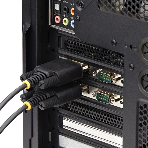Add four RS-232, RS-422, or RS-485-capable DB9 Serial Ports to a desktop computer via PCIe x1 Expansion CardAdd serial communication support to a desktop computer or Small Form Factor (SFF) system, using this 4-Port Serial PCI Express Card. The four DB9 ports can be independently configured to support RS-232, RS-422, and 2/4-wire RS-485 standards, for communication with compliant serial peripheral devices.Per-Port Serial ConfigurationThis PCIe Serial Card is equipped with on-board DIP switches, enabling each DB9 serial port to operate in RS-232, RS-422, and/or RS-485 mode(s). The card features LED indicators per port, providing real-time monitoring of port activity.Configurable External SATA PowerThe PCI Express Serial Adapter Card features three power modes that are configurable via on-board jumpers, including 12V (1.5A per port), 5V (1.5A per port), or no power (RI), over pin 9.Legacy ConnectivityThis serial card enables the continued use of legacy serial devices, preventing down time and avoiding costly upgrades. The 4-Port PCIe Serial Card is an ideal system upgrade for a wide range of applications (e.g., point-of-sale terminals, PLCs, factory control and automation, scientific sensors, medical equipment, scanners, and oscilloscopes)The StarTech.com Advantage