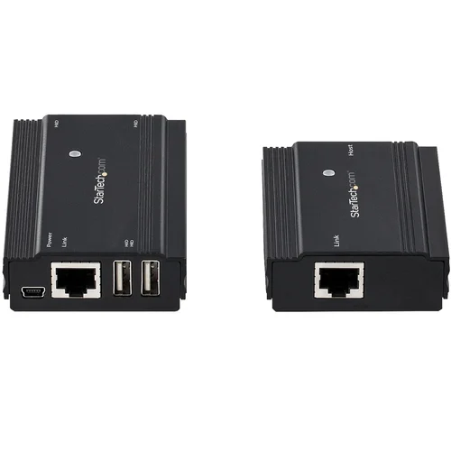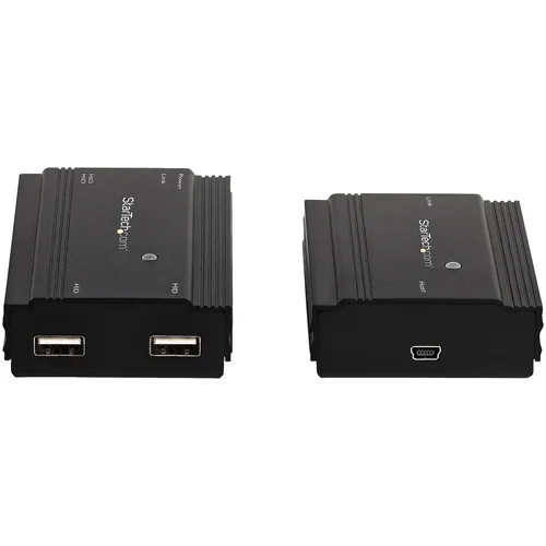 USB Extender Over CAT5e/CAT6/CAT7 | Rugged Enclosure | 2-Year WarrantyThis USB 2.0 extender enables you to connect up to four USB 2.0 devices over distances of up to 330 feet (100 meters), over standard Cat5e/Cat6/Cat7 Ethernet LAN cabling.Hi-Speed USB PerformanceWith data bandwidth of up to 480Mbps and no software installation required, the USB extender over Cat5e, Cat6, or Cat7 network cabling offers a fast, easy, and versatile solution for business or commercial applications with durable metal housing, an included surface-mounting bracket kit and simple plug-and-play installation.Plus, the 330 ft. (100 m) USB extender provides up to the full 500 mA of power (with the use of an external power adapter at the remote end) allowing for greater compatibility with bus-powered USB devices.Compatible with USB 2.0/1.1/1.0 DevicesConnecting low-speed peripherals or HID devices isn't a problem. This versatile USB over network extender is backward compatible with legacy USB 1.0/1.1 devices, so you can access up to four different types of USB devices from your remote location, far away from the host computer.The Choice of IT Pros Since 1985StarTech.com conducts thorough compatibility and performance testing on all our products to ensure we are meeting or exceeding industry standards and providing high-quality products to IT Professionals. Our local StarTech.com Technical Advisors have broad product expertise and work directly with our StarTech.com Engineers to provide support for our customers both pre and post-salesUSB2004EXT100 is backed by a StarTech.com 2-year warranty and free lifetime 24/5 North American based, multi-lingual support.The StarTech.com Advantage