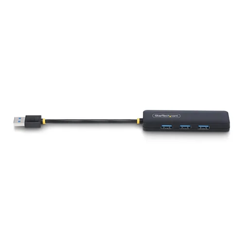 Add four external USB 3.0 ports to your notebook or Ultrabookâ„¢ with a slim, portable hubConnect up to four USB 3.0 devices to a laptop/PC via a single available USB-A port.Add USB Ports Anywhere You GoWith its compact, lightweight, and USB-powered design, this 4-port USB hub is perfect for mobility and travel. The hub also features small-footprint housing, which means it takes up less desk space. It easily fits into a laptop bag when traveling, allowing you to expand your connection options almost anywhere you need to. It's perfect for connecting common USB devices such as a mouse, keyboard, or flash drive.Bus-Powered Design Makes Travel Hassle-FreeThis versatile hub features a built-in 5in (13cm) USB cable and is bus-powered, so it draws its power directly from the computer's USB port, reducing clutter and simplifying setup by eliminating the need for an external power adapter.Convenient Port AccessWith three ports on one side and one on the end, this hub provides easy access for connecting and disconnecting devices.Universally Supported for Easy InstallationThe USB Hub is OS independent, supporting all operating systems (Windows, macOS, ChromeOS, and Linux), and installs automatically when connected to a computer. Additionally, this hub is compatible with all hardware platforms, including Intel, AMD and Apple Silicon.The StarTech.com Advantage