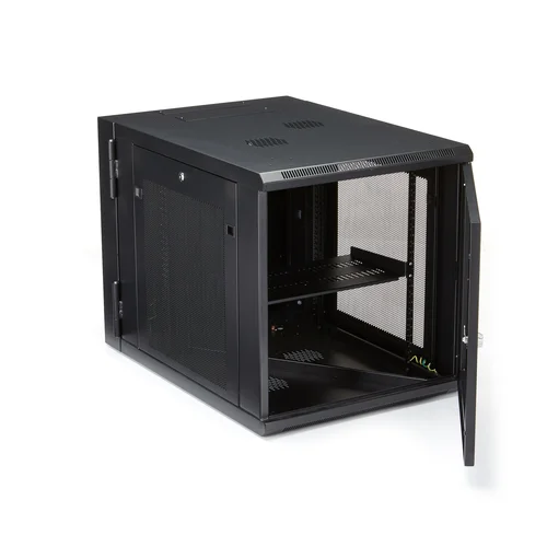Securely mount your server equipment with this 12U wall-mounted network cabinet featuring a hinged design for easy access.