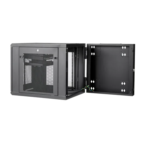 Use this wall mount network cabinet to mount your server or networking equipment to the wall with a hinged enclosure for easy accessThis 12U server or network rack cabinet lets you mount your EIA-310 compliant equipment to the wall, in a secure enclosure that has a hinged rear door for easy access to your equipment. The enclosure features adjustable mounting depth from 3 to 23.8 in. to provide a robust storage solution for your rack-mount equipment.To provide secure stability for your heaviest equipment, this rack offers 4-post mounting, supporting a higher weight capacity per U than 2-post racks and supporting a total load capacity of up to 200 lb. (90 kg).Save space in your office or server roomSave valuable floor space by wall-mounting the enclosure. The wall-mounted design makes this enclosure the ideal solution for optimizing equipment storage in your classroom, retail store, server room or office. This rack also includes a 1U shelf that gives you a stable surface for placing equipment that's not rack-mountable or storing your tools.Easily access your servers and network equipmentThe wall-mount network rack makes it easy to access your equipment and cabling, with a rear hinge that swings the enclosure away from the wall. By flipping the enclosure 180 degrees upon installation, you can reverse the direction of the hinge so that the enclosure can swing open from left or the right, depending on your preference.The 12U network cabinet features a removable and reversible front door and removable side panels, each with quick-release mechanisms, so you can easily access your equipment. Plus, each door and panel on this rack features an independent lock, ensuring your equipment is secure.For hassle-free cable management, the rack includes a 3 meter roll of hook-and-loop cable tie that makes it easy to keep your cables neat and tidy by binding them together or binding them to the rack. The self-gripping fabric can be cut to any size, enabling a wrap-around solution for the cables of any rack-mount equipment.Securely protect your equipmentThis server rack enclosure features heavy-duty steel construction, with lockable doors at all entrances. The enclosure is 33.4 in. deep to maximize compatibility with your deeper rack-mountable equipment.To ensure your equipment is running at an optimal temperature, the server rack/cabinet promotes passive cooling. It features mesh doors and vented top and bottom panels for maximum airflow.For simple and sturdy mounting, the rack's mounting holes are positioned 16 in. apart, so you can securely attach it to a wall using wall studs.The StarTech.com Advantage