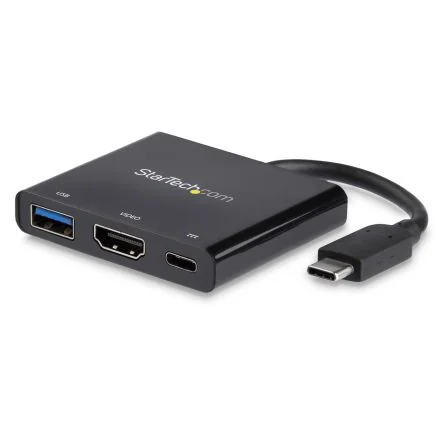 CDP2HDUACP USB C Multiport Adapter With HDMI This USB-C™ multiport adapter with HDMI lets you add vital connections to your MacBook or Windows laptop, through a single USB-C port. Connect a UHD 4K HDMI Monitor For maximum productivity, connect your USB-C or Thunderbolt 3 laptop to a 4K 30Hz monitor, using this USB-C to 4K HDMI adapter. You can also connect to an HDMI projector or TV in a boardroom or other meeting space, to deliver presentations on a shared screen. Charge Your Laptop The USB-C adapter lets you power and charge your USB-C laptop during a presentation or while you’re working, with a USB-C Power Delivery port. Even if your laptop has only a single USB-C port available, you can keep your laptop powered. Add a USB 3.0 Port This USB-C multiport adapter offers a USB 3.0 port thats backward compatible with older USB devices - ideal for data transfers, syncing, or charging your mobile devices. Travel-Friendly Design The compact all-in-one adapter is a vital accessory for your USB-C laptop. With its small-footprint design, you can take it with you anywhere you would use your laptop. CDP2HDUACP is backed by a StarTech.com 3-year warranty and free lifetime technical support. Features & Benefits • Carry the portable USB-C all-in-one adapter with you wherever you go • Add an additional display with this UHD 4K capable USB-C video adapter • Power your laptop with 60W Power Delivery using this multiport adapter and a USB Type-C power adapter • Connect a USB 3.0 Type-A device, like a flash drive or a mouse, to your Windows or MacBook Pro laptop Applications • Multitask faster with an additional, 4K HDMI monitor • Deliver presentations from your laptop on an HDMI TV or projector • Connect to an HDMI TV in a hotel or hoteling/hot desk space What’s in the package? • USB-C to 4K HDMI multifunction adapter Note To ensure full adapter functionality, your laptop’s USB-C port must support USB Power Delivery and DP Alt Mode. FAQs What is USB-C? USB-C is a type of USB connector that is capable of supporting the following: Data transfer speeds up to 10Gbps, if you use USB 3.1. Bi-directional power delivery up to 100W, if both the USB host connection and the device support it. Alternate modes, which deliver different types of data at different speeds. For example, DisplayPort Alternate Mode (DP Alt Mode). If using Thunderbolt 3 over USB-C, the connection is capable of additional features. For example, Thunderbolt 3 is capable of 40Gbps of total bandwidth. Not all USB-C ports or devices are capable of supporting all of the features listed above, or all of the features at the maximum capabilities. If you require a specific USB-C feature, your USB host connection, cables, and device must all support the feature that you require.