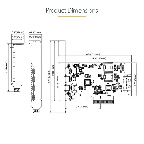 Add four USB Type-C (USB 3.2 Gen 2 10Gbps) ports to a PCIe host computer, plus an internal USB Type-A (10Gbps) portUpgrade or expand a desktop or server's USB connectivity by adding four external USB Type-C 10Gbps ports and one internal USB Type-A 10Gbps port via a single PCI Express x4 connection.USB 3.2 Gen 2 (10Gbps) PerformanceThe ASM3142 controller supports USB 3.2 transfer speeds of up to 10Gbps, making it ideal for transferring large files or editing high-resolution photos and videos on external storage devices.Charge and Sync USB DevicesThis USB PCIe expansion card can receive supplemental power through SATA power, providing up to 5V 3A (15W) per USB Type-C port and 5V 1.5A (7.5W) on the USB Type-A port when motherboard power is insufficient.CompatibilityThe PCI Express USB card drivers auto-install in most major operating systems, including Windows 8 and up, macOS, and Linux. It works with hardware platforms such as Intel, AMD, and Apple Silicon and fits in PCI Express x4, x8, and x16 slots. Additionally, the USB expansion card comes with a pre-installed standard profile bracket and includes a low-profile bracket for compatibility with small form factor (SFF) desktops and servers.The StarTech.com Advantage