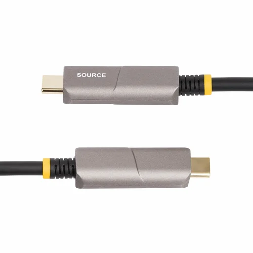 Connect a USB-C video source to an HDMI display, with support for HDR videoConnect a 4K 60Hz HDMI display to a DP Alt Mode-enabled USB Type-C source up to 50 feet (15.2 meters) away with this USB-C to HDMI Active Optical Cable.Designed for Long RangeThe USB-C to HDMI Active Optical Cable is designed for long-distance connections to overcome the limitations of standard copper cables. Its fiber optic inner core reduces electromagnetic interference (EMI), ensuring optimal signal quality with minimal signal degradation. EMI shielding reduces noise and improves signal clarity and stability.Integrated Adapter Cable with HDRThis cable integrates a video adapter and cable, minimizing points of failure and signal loss. The HDMI Connector has a built-in 1.4ft (43.5cm) USB Type-A power cable, which is required to connect to an available USB port or USB wall charger (not included). HDR support includes 8/10bit RGB and YCbCr 4:4:4 for accurate color reproduction.No Drivers or SoftwareUniversal Adapter Cable does not require additional drivers or software installation. Compatible with all hardware platforms and operating systems including Windows, macOS, ChromeOS, and Linux. This USB Type-C to HDMI Adapter Cable works with laptops and devices that support USB-C DP Alt Mode, USB4, Thunderbolt 3, and Thunderbolt 4.Durable Optical CableThe OM3 multi-mode HDMI fiber optic cable features a durable PVC jacket, strain relief, and active booster for reliable transmission over long distances. This cable is lightweight, making it easy to route through walls or cable runs, store when not in use, and transport when needed.The StarTech.com Advantage