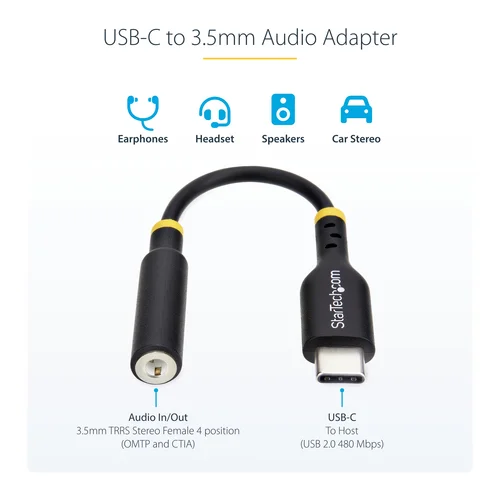 - Startech.Com 5in (12.7cm) Usb-C To 3.5mm Trrs Headphone/Headset Jack Audio Adapter, Usb Type-C Aux Dongle, 32-Bit Dac, Supports Usb-C/Thunderbolt, Laptop/Phone/Tablet - USBCAUDIO2