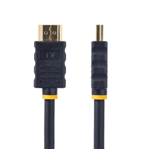 Create Ultra HD connections between your High Speed HDMI®-equipped devices, up to 5m away with no signal lossThe HDMM5MA 15 ft Active High Speed HDMI® Cable features a built-in active signal booster for a connection distance of up to 15 feet (5m) between your HDMI-enabled devices, with no signal loss. This built-in amplifier circuitry actively boosts the HDMI signal with no external power required.This high quality HDMI cable fully supports 1080p+ resolutions at up to 120Hz refresh rate, with life-like color. To accommodate the demands of future high definition devices, such as increased resolutions and higher frame rates, this Ultra HD cable supports resolutions up to 4k x 2k.Please Note : This cable features unidirectional architecture which requires that the cable is installed in the correct direction. Please refer to the "TV" label on the HDMI connector which plugs into your display, in order to ensure that the device and the HDMI source are connected properly.The StarTech.com Advantage