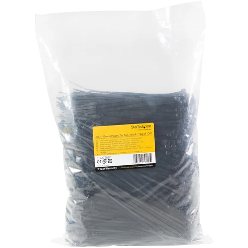 1000 Pack | Medium | 6" 152.4 mm | Black | Nylon 66 |94V-2 Fire & UL Rated | TAA | ULThese Medium cable ties enable you to conveniently bundle and secure multiple cables, to route and organize them. 1000 Black cable ties are included, ensuring you'll have plenty on hand.Keep Cables OrganizedThese plastic electrical cable wraps are 6" (15 cm) in length securing cable bundles up to 1.53" (39 mm) in diameter. They're quick and easy to install or remove, with adjustable tension and a basic one-piece design -- perfect for organizing network cables, power cables, or other cables at your home or office workstation.Industrial StrengthMade of durable Nylon 66 material, these cable ties are tough and flexible. They've been rigorously tested to support up to 40 lbs (18.1 kg) of weight & are UL94 V-2 fire rated, UL Approved, and CE & Lloyd's Register Certified.Available in Different Lengths and ColorsTo suit any application, StarTech.com offers a wide selection of these cable ties in different lengths and colors:100-pack - 4" (10 cm) Black Cable Ties (CBMZT4B)100-pack - 4" (10 cm) White Cable Ties (CBMZT4N)1000-pack - 4" (10 cm) Black Cable Ties (CBMZT4BK)1000-pack - 4" (10 cm) White Cable Ties (CBMZT4NK)100-pack - 6" (15 cm) Black Cable Ties (CBMZT6B)100-pack - 6" (15 cm) White Cable Ties (CBMZT6N)1000-pack - 6" (15 cm) Black Cable Ties (CBMZT6BK)1000-pack - 6" (15 cm) White Cable Ties (CBMZT6NK)100-pack - 8" (20 cm) Black Cable Ties (CBMZT8B)100-pack - 8" (20 cm) White Cable Ties (CBMZT8N)1000-pack - 8" (20 cm) Black Cable Ties (CBMZT8BK)1000-pack - 8" (20 cm) White Cable Ties (CBMZT8NK)100-pack - 10" (25 cm) Black Cable Ties (CBMZT10B)100-pack - 10" (25 cm) White Cable Ties (CBMZT10N)1000-pack - 10" (25 cm) Black Cable Ties (CBMZT10BK)1000-pack - 10" (25 cm) White Cable Ties (CBMZT10NK)These cable wraps are backed by a StarTech.com Lifetime warranty and free 24/5 technical support. StarTech.com has been the IT professionals choice for over 30 years.The StarTech.com Advantage