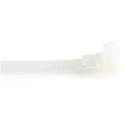 100 Pack | Medium | Resealable | UL | TAAThese Medium Resealable Cable Ties enable you to conveniently bundle and secure multiple cables, to route and organize them. 100 White cable ties are included, ensuring you'll have plenty on hand.Reduce Waste and Keep Cables OrganizedThese plastic electrical cable wraps are resealable and reuseable, enabling you to remove the cable tie, and attach it to different bundle, add additional cables into your bundle, or reroute your cables at any time using the same cable ties, saving you time and cost, while reducing waste. The cable ties are 6" (15 cm) in length securing cable bundles up to 1.37" (35 mm) in diameter. They're quick and easy to install or remove, with adjustable tension and a basic one-piece design -- perfect for organizing network cables, power cables, or other cables at your home or office workstation.Industrial StrengthMade of durable Nylon 66 material, these cable ties are tough and flexible. They've been rigorously tested to support up to 50 lbs (22.7 kg) of weight & are UL94 V-2 fire rated, UL Approved, and CE & Lloyd's Register Certified.Available in Different Lengths and ColorsTo suite any application, StarTech.com offers a wide selection of these cable ties in different lengths and colors:100-pack - 5 in. (125 mm) White Cable Ties (CBMZTRB5)100-pack - 5 in. (125 mm) Black Cable Ties (CBMZTRB5BK)100-pack - 6 in. (15 cm) White Cable Ties (CBMZTRB6)100-pack - 6 in. (15 cm) Black Cable Ties (CBMZTRB6BK)100-pack - 8 in. (20 cm) White Cable Ties (CBMZTRB8)100-pack - 8 in. (20 cm) Black Cable Ties (CBMZTRB8BK)100-pack - 10 in. (25 cm) White Cable Ties (CBMZTRB10)100-pack - 10 in. (25 cm) Black Cable Ties (CBMZTRB10BK)These reusable cable wraps are backed by a StarTech.com Lifetime warranty and free 24/5 technical support. StarTech.com has been the IT professionals choice for over 30 years.The StarTech.com Advantage