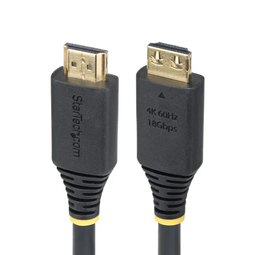 Minimize accidental disconnections using this HDMI Cable with gripping connectorsConnect to a 4K UHD TV or monitor, using this High Speed HDMI Cable. The connector markings enable quick visual identification, distinguishing this cable from other similar-looking or unmarked HDMI cables. Eliminate guesswork and always choose the appropriate cable to support full HDMI 2.0 capabilities.Gripping ConnectorsThe HDMI UHD Cord features gold-plated gripping connectors to prevent accidental disconnections. The connectors attach securely to HDMI device ports, making this cable ideal for critical A/V setups such as security systems and HDMI switches.Durable DesignThe HDMI Monitor Cable features a flexible TPE outer jacket that is tested to withstand 2,000 bending cycles at -/+60 degrees, and routes easily around corners and desk edges. Robust strain reliefs enable convenient positioning of the cable. The durable Gold-plated connectors are rated to operate beyond 10,000 insertions.Supported HDMI 2.0 Features:This High Speed HDMI Cable supports full HDMI 2.0 features:• Resolutions up to 4K 60Hz using a compatible HDMI source and display• Supports high refresh rates including 1440p 144Hz and 1080p 240Hz• 21:9 Aspect Ratio support for cinematic viewing experiences• High Dynamic Range (HDR10) for higher contrast ratio and vibrant picture quality• High-Bandwidth Digital Content Protection (HDCP) 2.2 for a secure connection between source and display• Audio Return Channel (ARC) for sending audio from the TV back to an AV receiver or soundbar• Up to 32 Uncompressed Digital Audio Channels• HDMI Ethernet Channel (HEC) for network connectivity over HDMI• Backward compatible with previous HDMI versionsThis HDMI 2.0 Cable is constructed with braided aluminum mylar shielding to minimize EMI for clear, consistent audio/video output and long-term reliable performance.The StarTech.com Advantage