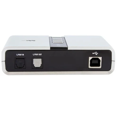 This versatile External USB Sound Card/Audio Adapter offers a high quality solution for upgrading desktop or laptop sound.Providing a robust USB audio experience, the USB sound card connects to a host computer through a single USB 2.0 connection, to deliver impressive external audio capability that can instantly be swapped between systems, without having to open the computer case for installation.Supporting analog and digital audio for 2 to 7.1 channel audio applications, the external USB sound card provides a cost-saving upgrade from built-in/on-board sound that turns desktop/laptop sound into a home theater-ready audio solution.The external USB sound card features easy-to-use volume control and two external microphone inputs - a convenient solution for any audio application requiring high quality sound with multi-input capability with support for 44.1 KHz and 48 KHz sampling rates for analog playback and recording or 48 KHz for SPDIF.A more than suitable solution for home theater, gaming or multi-media presentations, the External USB Sound Card is easy to install with plug and play support in Windows XP and Windows Vista operating systems.Designed to deliver a long-lasting and dependable sound solution, the External USB Sound Card/Audio Adapter is backed by our 2-year warranty and free lifetime technical support.Note: The audio adapter’s SPDIF optical pass-through port supports two-channel audio, this port does not support 5.1 or 7.1 audio.The StarTech.com Advantage- Full 7.1 audio output support in a compact and portable external sound card- Connect to external speakers through 3.5mm mini-jacks or optical S/PDIF- Backed by a StarTech.com 2-year warranty and free lifetime technical support