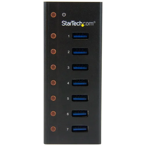 Connect 7 high-performance devices to your computer or Mac with this compact and rugged hubThe StarTech.com 7-port USB 3.2 Gen 1 hub is your answer for a durable and compact hub that's ideal for desktop or travel usage.Enjoy desktop convenience or painless portabilityThis hub is perfect for a permanent setup with a desktop computer, with a rugged metal housing that can withstand the wear and tear of daily use. Plus, you can attach it to a surface such as a desktop or wall using the included wall-mount bracket.The compact size and durability of the hub also make it perfectly portable. When you’re on the go, its robust design resists damage that can occur when travelling or from back-and-forth trips from home to office.Connect devices quickly and easilyThe ports on this hub are upright, which makes it perfect for IT professionals or anyone who needs to plug and unplug their USB devices regularly. You have lots of room to grip the connectors, without the worry of oversized plugs taking up too much space and reducing the number of available ports.With extra USB 3.2 Gen 1 ports, you can increase productivity and connect more devices to your computer, or simply avoid the hassle of swapping connected devices on your port-limited laptop. The hub makes your USB ports more accessible and can easily extend the range of your devices by acting as a mid-point repeater.Use with high-performance and older devicesThe ST7300U3M supports the latest USB 3.2 Gen 1 products including UASP-enabled storage devices. With data transfer speeds of up to 5 Gb per second using SuperSpeed USB 3.2 Gen 1 technology, this high-performance hub is the perfect accessory for your desktop, laptop, MacBook®, or UltraBook™.You can also use the hub with older peripherals and computers, with support for USB 2.0 and 1.x devices and no additional drivers or software required for installation.Backed by a StarTech.com 2-year warranty and free lifetime technical support.The StarTech.com Advantage