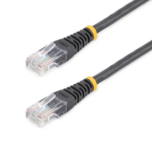 Make Fast Ethernet network connections using this high quality Cat5e Cable, with Power-over-Ethernet capabilityThe M45PAT15MBK Cat5e Patch Cable (15m) meets or exceeds all Cat 5e specifications to ensure reliable Ethernet network connections, and features a durable black PVC jacket that enables you to color code your network cable runs as needed.To ensure long-lasting performance, this high quality Cat5e patch cable features molded PVC strain relief that prevents the RJ45 connector termination points from bending at sharp angles - reducing the risk of cable damage, which could decrease network performance.Constructed of only top quality materials, this Cat5e Patch Cord delivers reliable performance and is backed by our Lifetime Warranty.100% Copper - a better valueStarTech.com Cat5e cables are manufactured using high-quality copper conductors. While many cable manufacturers offer a "cheaper" cable, based on a copper-coated aluminum core, we make no compromises on quality to ensure you receive top value and performance for your network cable investment.24 AWG WireThis Cat 5e cable is constructed with 24 gauge copper wire, to support a broad range of Ethernet applications such as Power over Ethernet (PoE). Because we use a high quality copper wire, our cables easily sustain the power required for Power over Ethernet applications, whereas the inferior quality offered by copper-coated aluminum cables may be subject to insufficient power delivery, heat buildup, equipment damage and potentially, fire.50-micron Gold ConnectorsThis molded patch cable offers high quality connectors comprised of 50-micron gold, to deliver optimum conductivity while eliminating signal loss due to oxidation or corrosion.The StarTech.com Advantage