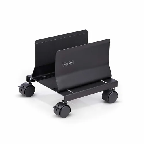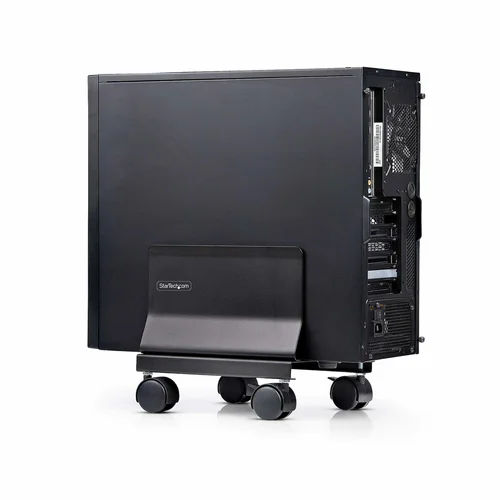Optimize your work space by mounting your CPU in this adjustable mobile cartThis Rolling Computer Tower Stand provides a secure and mobile stand for a desktop computer. The computer caddy allows for full access to the front and back of a CPU tower and ensures a clear path for optimal airflow. The durable steel construction, combined with protective anti-slip pads, safeguards your CPU chassis from damage, making it a reliable solution for workstation applications.Toolless AdjustmentAdjusting the width of the bracket is easy with the toolless adjustment. Use the wing nuts on the bottom of the base to expand the holder from 4.9 to 8.2 inches (125 to 208mm). This flexibility allows the rolling holder to accommodate various case sizes, including UPS battery backups, providing a custom fit for the installed device.Save SpaceMaximize your desk space by offloading your desktop computer to the mobile cart. The casters at the base enable effortless positioning wherever needed, and the brakes ensure it stays securely in place. With a maximum weight capacity of 46.3 pounds (21kg), this cart is designed to support equipment while keeping the workspace organized.Hassle-Free Computer AccessExperience hassle-free access to your PC's drive bays, peripheral ports, and cables with the under-desk adjustable mobile caddy. The quick assembly process, requiring only three main components, and the inclusion of all necessary hardware make setup simple and straightforward. This practical design keeps your tech easily accessible.The StarTech.com Advantage