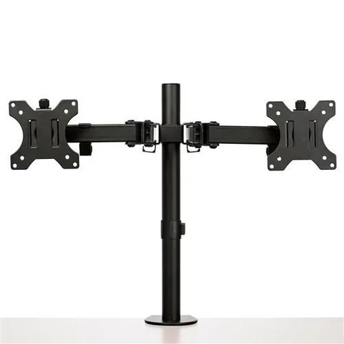 Monitor Mount | Desk/Grommet | Double Joint | Adjustable | For up to 32" MonitorsWork in comfort while saving space. This highly functional desk mount dual monitor arm brings you a cost-effective and versatile solution to an ergonomic workspace. Enjoy a wide range of motion with the double-jointed crossbar design plus tilt, swivel, rotation and height adjustment. Make your Workspace Work for YouThe multi monitor mount gives you the flexibility to set-up your desktop your way. Each of the articulating arms extends a full 15.7" (39.9 cm) to adjust to your needs. The flexible double joints on the arms give you numerous options to position your monitors. You can place your monitors to face you, or even turn your monitors right around, 180-degrees, to share your screen with others. If you choose, you can also tighten the joints, making your setup as stationary as you like.Crossbar Design Made of SteelThe cross-bar design provides a clean and simple look, while keeping monitors aligned. Use the micro-adjustment knob to align your monitors perfectly.Made of steel, the rugged two display arm securely supports two VESA mount (75x75, 100x100) monitors up to 32", with a weight capacity of 17.6 lb. (8 kg) per monitor.Find the Ideal Viewing AngleThe double monitor arm lets you smoothly and effortlessly adjust the position of your screens for optimum viewing. Tilt your monitors +45/-45 degrees. Swivel +90/-90 degrees to the left or right. Rotate your monitors to portrait or landscape position with the 360-degree rotary VESA plate.Height AdjustableAdjust your monitors to the desired height. The dual screen mount is height adjustable along the 17.4" (44.3 cm) pole.Easy to InstallThe multiple monitor mount is easy to install, using the C-clamp to attach the mount to the edge of your desk, table, or counter or mounting it through a grommet hole. The detachable VESA plate makes it easy to attach or remove your monitor. The built-in cable management keeps your cables neatly tucked away. ARMDUAL2 is backed by a StarTech.com 5-year warranty and free, lifetime technical support. The StarTech.com Advantage- 32 INCH LARGE MONITOR SUPPORT: VESA 75x75mm / 100x100mm compatible multi monitor mount supports 2 large monitors up to 32" (17.6 lb / 8 kg) per arm w/ horizontal articulation & basic height adjustment- WIDE RANGE OF MOTION: Double monitor mount increases ergonomic comfort and productivity with +45/-45° tilt, +90/-90° swivel, 360° rotating display, and adjustable height along the 15.7" (39.8 cm) pole- ADJUSTABLE SET UP: Use the desk-clamp (C-clamp) or grommet mount to easily mount and tighten by hand to a desktop & cable management clips can hold incl. tools for quick height & angle adjustment