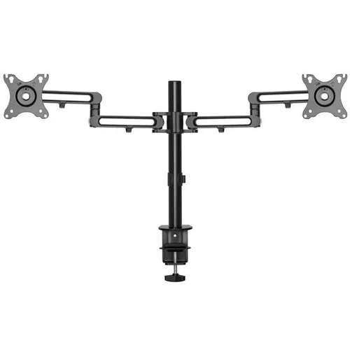 Monitor Mount | Desk C-Clamp | Dual Swivel Arms | Adjustable | For up to 32” MonitorsCreate a sleek and elegant two-monitor set-up while saving space. This stylish desk mount dual monitor arm brings you a cost-effective and versatile solution to an ergonomic workspace. Enjoy a wide range of motion with the dual swivel arms plus tilt, pan, rotation and height adjustment. Make your Workspace Work for You The multi monitor mount gives you the flexibility to set-up your desktop your way. Each of the articulating arms extends a full 15.2" (38.6 cm) to adjust to your needs. The flexible dual-swivel arms make it easy to position your monitors. You can place your monitors to face you, or even turn your monitors right around, 180-degrees, to share your screen with others. Contoured Design Made of Aluminum The attractive dual monitor mount utilizes a contoured design made of durable aluminum, with an attractive high gloss black finish. The two-monitor arm securely supports two VESA mount (75x75, 100x100) monitors up to 32", with a weight capacity of 17.6 lb. (8 kg) per monitor. Find the Ideal Viewing Angle The double monitor arm lets you smoothly and effortlessly adjust the position of your screens for optimum viewing. Tilt your monitors +30/-30 degrees. Swivel +90/-90 degrees to the left or right. Rotate your monitors to portrait or landscape position with the 360-degree rotary VESA plate. Height Adjustable Adjust your monitors to the desired height. The dual screen mount is height adjustable along the 15.7" (39.8 cm) pole. Easy to Install The multi monitor mount is easy to install, using the C-clamp to attach the mount to the edge of your desk, table, or counter. A keyhole design on the VESA mount makes it easy to slide your monitor onto the mount, then tighten into place. Built-in cable management helps to keep your cables neatly tucked away. ARMDUAL3 is backed by a StarTech.com 5-year warranty and free, lifetime technical support.The StarTech.com Advantage- 32 INCH LARGE MONITOR SUPPORT: VESA 75x75mm / 100x100mm compatible multi monitor mount supports 2 large monitors up to 32" (17.6 lb / 8 kg) per arm w/ horizontal articulation & basic height adjustment- WIDE RANGE OF MOTION: Double monitor mount increases ergonomic comfort and productivity with +30/-30° tilt, +90/-90° swivel, 360° rotating display, and height adjustment along the 15.7" (39.8 cm) pole- ADJUSTABLE SET UP: Use the desk-clamp (C-clamp) to easily mount and tighten by hand to a desktop (40-85 mm thickness) & cable management clips to hold incl. tools for quick height & angle adjustment