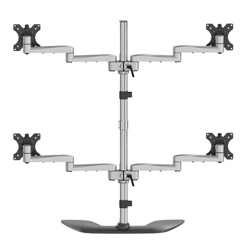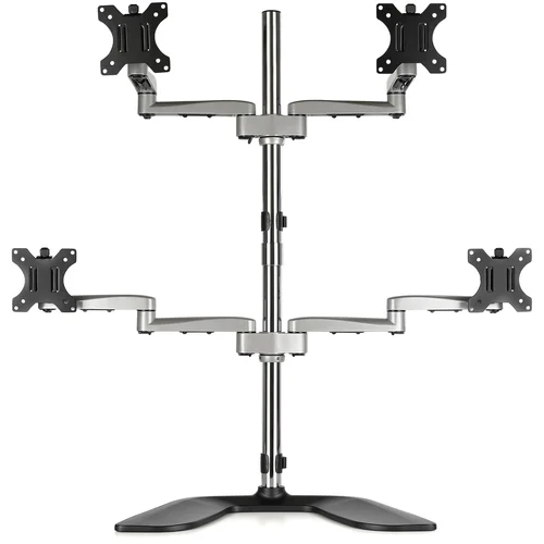 Four Monitor Mount | Height Adjustable | For Up to 32" MonitorsBoost productivity and customize your workspace with this quad-monitor stand, suspending four monitors above your desk. Enjoy optimum viewing with four articulating monitor arms, providing a wide range of motion. The free-standing base gives you flexibility in placing your setup within your workspace.Designed for ProductivityConstructed of aluminum and steel, the heavy-duty four-monitor stand lets you set up your workspace for optimum productivity. The monitor stand supports four VESA mount (75x75, 100x100) monitors up to 32" each, with a maximum weight capacity of up to 17.6 lb./8 kg per display.Create a More Ergonomic WorkspaceCreate a multi-monitor workstation that works best for you. Take advantage of four-screen efficiency for financial analysis, web coding, video editing or many other applications. Customize your setup by adjusting your display height, position and viewing angles for an ergonomic workspace. The swiveling arms provide maximum viewing flexibility.Height-Adjustable Monitor MountPlace your monitors at the ideal height. Simply adjust the display height along the 35.6 in (904 mm) pole. Align your monitors with the micro-adjustment feature.Enjoy Optimum ViewingThe four-screen monitor stand lets you extend the articulating arms up to 16.6" (42.2 cm) to position your monitors in the ideal position. Tilt your monitors +90/-40 degrees and swivel +/-90 degrees. Rotate your displays 360 degrees for portrait or landscape viewing.Keep Cables Out of ViewNeatly route your cables with the cable-management channels.ARMQUADSS is backed by a StarTech.com 5-year warranty and free lifetime technical support.The StarTech.com Advantage