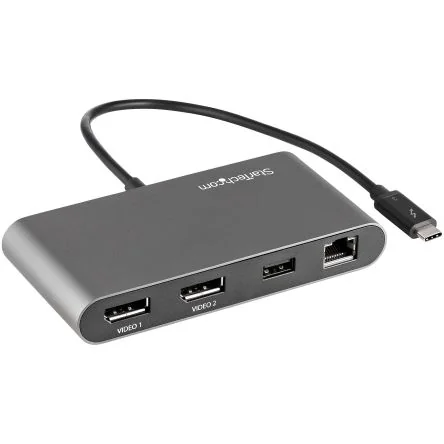 StarTech.com 4K Thunderbolt 3 Docking Station for Mac and Windows - TB3DKM2DP Fully compatible with a wide range of operating systems, StarTech.com have outdone themselves with this versatile and highly portable dock. Connect two 4K displays via DisplayPort from your Thunderbolt 3 or USB C enabled computer whether you’re hot desking or working from home. It’s easy and requires no set up. For users wanting a range of ports and flexibility with connection options, particularly when laptops are being released with limited port options, this is the perfect solution. Fantastic Video Output StarTech’s laptop docking station provides two DisplayPort ports to allow users to create a dual-display setup by connecting 2 separate 4k screens. The DisplayPort connections can display 4k @ 60Hz.For users sporting a 5k external display, you can use both DisplayPort receptacles to connect it @ 60Hz. But this would limit the number of screens you can connect to only one.This is a superb way presenting in the boardroom and its valued addition for home or office workers where multiple HD monitors are incorporated into your workstation. It offers great versatility to users who are constantly having to adapt and improves productivity with the ability to host multiple displays. The Essentials With thunderbolt 3, this hub supports a massive 40Gbps of data transfer, meaning users can speed up their working day and not wait for hefty files to transfer. The USB A port is version 3.0 for fast data transfer. And with one USB-C port as well, make sure you’re always connected to your essential devices at any time for power or data transfer. The Extras StarTech.com have thought about what users want from this dock and have provided a highly adaptable hub for users with different needs. Not only does it feature USB A and type-C ports, it also boasts gigabit ethernet (RJ45) with Wake on LAN and Preboot eXecution Environment for a suitably reliable connection. Features and Benefits • Connect 2x 4K monitors @ 60Hz and have dual-4K display • Connect a single 5K monitor @ 60Hz • 28cm Thunderbolt 3 cable • Transfer 40Gbps with TB 3 • 1x USB Type-A female 3.0 port • 1x USB-C female 3.0 port • 2x DisplayPort ports • 1x RJ45 gigabit ethernet port • Portable with a small profile • Suitable for Mac and Windows • Aluminium casing FAQ What are the applications for this docking station? Users can connect a variety of peripherals to their laptop including dual 4k monitors at work or at home. Charge multiple gadgets at once, stay connected to the internet, and connect two separate 4k screens for ultimate working or gaming. What is a thunderbolt 3 docking station? This type of dock connects via a thunderbolt 3 or USB C port on a computer with limited port options. The purpose of these docks is to expand the port options available to a user. What is the purpose of a docking station? The purpose of this dock is to expand on the different types of ports your current computer has. Why do I need a docking station for my laptop? With more and more laptops being released with a limited number and variety of port types, users are utilising docks to expand the ability to connect other peripherals to their computers. How does a docking station work? A docking station is often bus powered and runs off the power on your laptop or tablet. There is normally one male connector, typically a USB A or C port, which connects to your computer. Once connected, users are free to connect whatever peripherals they require to the dock if there is a port available and compatible. What’s in the box? • Thunderbolt 3 Dock • Docking Station • Instruction Manual • User Manual