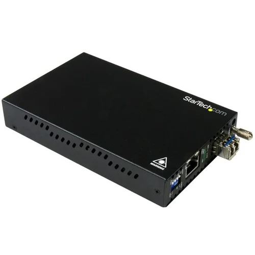 This Gigabit Ethernet to fiber media converter is a cost-effective way to extend your network, or extend the distance between two devices by up to 20 km (12.4 mi.).Fiber network connections provide greater distance and security, with less electromagnetic interference (EMI) than typical RJ45 copper-based networks, making it perfect for IT professionals and secure setups in government, business, or educational applications.Flexible integration into mixed network environmentsThis versatile copper-to-fiber converter supports standalone operation, or alternatively it can be installed into the StarTech.com Rackmount Chassis (ETCHS2U - sold separately), giving you more options for integration into your existing network. The card module can also be inserted back into the ET91000SM20 enclosure, plus it’s compatible with enclosures from other StarTech.com ET91000 series media converters (sold separately).The converter features a pre-installed Gigabit SFP transceiver with LC connectors. Should your network infrastructure change in the future, you can easily swap and replace the module to adapt the media converter to your new network requirements.With flexible integration and connectivity up to 20 km away, you can provide network access to remote areas in other buildings, or in areas where Wi-Fi® is unreliable or unavailable.Rugged and reliableThis heavy-duty fiber media converter is designed for maximum reliability. It features a metal (steel) enclosure, so it can withstand the demands of harsh environments such as factories or warehouses.Plus, by relying on this more durable fiber media converter, you can reduce the strain on your existing copper-based network equipment and potentially extend the life of those devices, which helps save future expenses.Diagnose and correct issues easilyThis high-performance media converter supports a range of network setup and diagnostic protocols (for example, Link Fault Passthrough, Auto Laser Shutdown (ALS), and Auto MDIX, so you can set up and troubleshoot your network easily.Prepare your network for the futureIf your existing network consists of RJ45 copper-based devices and cables, you might not be ready for future network expansion. Because the newest fiber-based network switches feature SFP ports more often than RJ45 ports, you might need a converter to bridge your copper and fiber networks together.The ET91000SM20 is backed by a StarTech.com 2-year warranty, and free lifetime technical support.