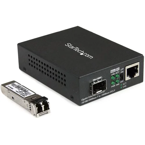 Convert and extend different networks over a Gigabit fiber cable connection up to 550m / 1804ftThis fiber media converter offers an easy, cost-effective way to extend your network over Gigabit fiber. It is equipped with a multimode transceiver which converts a copper RJ45 Ethernet connection to Gigabit fiber to extend your network over longer distances or connect workstations to switches. The converter provides a powerful extended networking solution for campuses, businesses, government facilities, stadiums, or other areas requiring network access.Cost-effective extension and dependable performanceThe Gigabit Fiber Media Converter provides a cost-effective and dependable solution for shorter range network extensions. It connects an Ethernet network to remote devices over a fiber backbone, with a 550m range on the fiber optic interface. The media converter has a durable metal housing, engineered to deliver long-lasting performance.Versatile connections for broad compatibilityFully compatible with 10/100/1000Base-T Ethernet networks, the fiber media converter supports auto negotiation to bridge different speed networks and devices to a Gigabit fiber network. It provides versatile connectivity to your existing networks and devices, allowing you to maximize the usage and performance of legacy equipment.The multimode transceiver is removable, giving you the flexibility to change your transceiver in the future to meet your networking needs.Easy installation and compact convenienceThe unmanaged fiber media converter has a standalone design with simple plug-and-play set-up to ensure fast and easy installation. Compact in size, the converter gives you flexible installation options - including a wall mounting option to save space.The MCM1110MMLC is backed by a StarTech.com 2-year warranty and free lifetime technical support.The StarTech.com Advantage- Convert between an RJ45 copper Ethernet connection and a fiber optic connection to extend your network cost-effectively- 10/100/1000 Mbps RJ45 port supports auto negotiation to bridge different network speeds and devices to a Gigabit fiber network- Compact standalone design and wall mounting option for easy and convenient installation