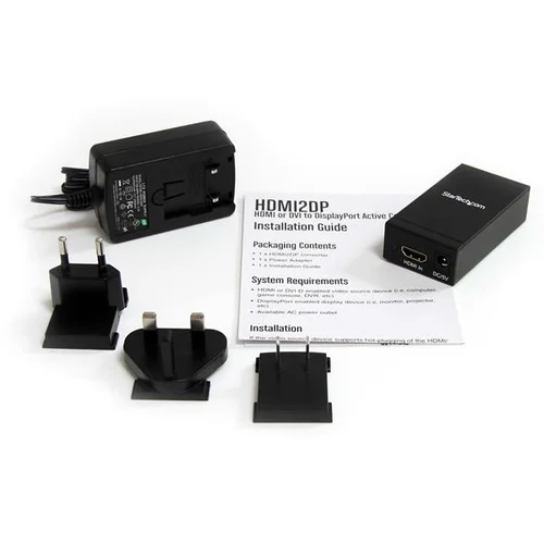 Connect a DisplayPort monitor to an HDMI equipped computerThe HDMI2DP DVI or HDMI to DisplayPort Converter converts an HDMI, DVI or Mini DVI input signal into a DisplayPort (or Mini DisplayPort) output, eliminating the cost of upgrading your source device hardware or purchasing a new display. With support for full HD resolutions up to 1920x1200, the HDMI2DP converter is the perfect solution for connecting devices that have an HDMI, DVI single-link or mini DVI output, such as video cards (desktop or laptop), video game consoles or home theater receivers, to your DisplayPort-capable display. Backed by a StarTech.com 2-year warranty and free lifetime technical support.The StarTech.com Advantage- Stores EDID information on the converter to ensure better compatibility between the source and display- Supports HDMI or DVI (see accessories for DVI) to DisplayPort conversions, providing an ideal solution for connecting to your new DisplayPort monitor- Simple plug-and-play installation - no software or drivers required