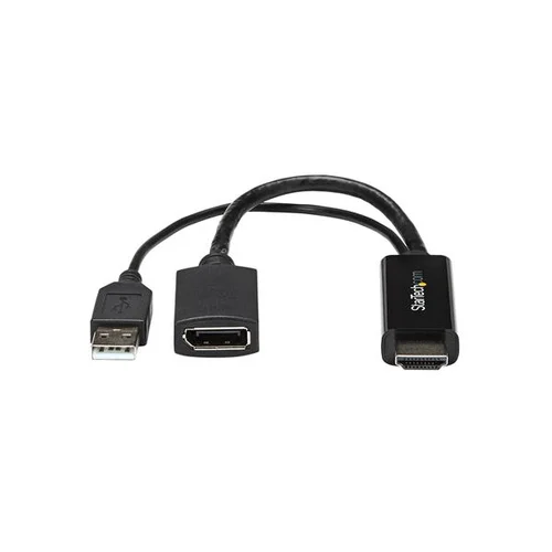 Connect your HDMI enabled Ultrabook or laptop to a DP monitor using this compact, USB-powered adapterThis HDMI to DisplayPort adapter lets you connect an HDMI video source, such as your laptop, desktop, Blu-ray player, or camera, to a DisplayPort monitor or projector.Be more productiveThe active HDMI to DisplayPort adapter offers plug-and-play installation, providing a hassle-free setup with no software or drivers to install. The adapter uses a USB port for power, avoiding the need for an extra power adapter. It also features a compact design that requires very little space at your workstation.The HDMI to DP adapter lets you add a second monitor to your laptop, providing the additional screen space you need to multitask more efficiently and accomplish more in the same amount of time. It offers a definite productivity boost, and lets you view documents, spreadsheets, and web pages across multiple screens.Enjoy Ultra HD picture qualityWith support for 4K at 30Hz, you get a sharp, crisp picture that’s richer and more true-to-life than traditional HD, with far greater detail. The adapter delivers Ultra HD content to your DisplayPort monitor and supports 7.1 channel surround audio.The adapter is backward compatible with 1080p displays, which makes it a great accessory for home, office or other workspace applications.The HD2DP is backed by a StarTech.com 2-year warranty and free lifetime technical support.The StarTech.com Advantage- Provides a compact solution with a plug-and-play installation- Increase your productivity by connecting a second monitor to your laptop- Deliver astonishing picture quality with support for video resolutions up to Ultra HD 4K