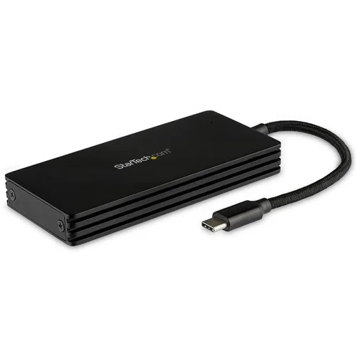 Portable M.2 SATA to USB Adapter | Attached USB-C CableAdd high-performance external data storage to your USB-C laptop, tablet or desktop computer, with this SATA M.2 SSD enclosure. It lets you use your SATA M.2 drive as an ultra-fast external storage solution over a USB 3.1 Gen 2 connection. It’s ideal for your MacBook, Dell XPS, Chromebook Pixel or other USB Type-C device.Truly PortableThe compact M.2 SATA to USB adapter is easily portable and gives you high-speed access to your data, wherever you go. The integrated USB-C cable (6"/15.2 cm), means you’re always ready to plug it in, without having to remember to bring along a cable. Durable Aluminum DesignThe sturdy aluminum and plastic enclosure encases your M.2 SATA SSD and features built-in ventilation that improve heat dissipation to help keep your drive at a suitable operating temperature. Use your M.2 SATA Drive for External StorageEasily use your M.2 SATA drive as external data storage. This M.2 NGFF SSD enclosure provides a simple connection to your M.2 SATA SSD over USB 3.1 Gen 2. You can transfer files quickly, without bottlenecks, using a SATA M.2 SSD as your external drive. Broad CompatibilityThe enclosure supports common M.2 SATA SSDs and multiple drive lengths, including: 42 mm (2242), 60 mm (2260), and 80 mm (2280). The USB to M.2 SATA enclosure works with USB-C host devices and is also compatible with Thunderbolt 3 USB-C ports. SM21BMU31CI3 is backed by a 2-year StarTech.com warranty and free lifetime technical support. The StarTech.com Advantage- Turn your SATA M.2 SSD into external storage for your USB-C laptop, tablet or desktop computer- Ultra-fast USB 3.1 Gen 2 data connection for M.2 SATA drives- Compact solid aluminum design (4x2x1.5” / 11x5x1.4 cm) with ventilation and attached braided cable