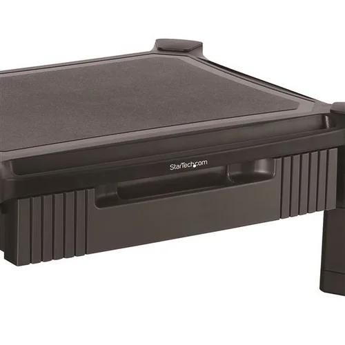 Free up desk space and work in greater comfort with this adjustable monitor standRaise your monitor to eye level for more comfortable viewing, while saving desktop space. You can set this sturdy height-adjustable monitor stand on your desk or table, to support a monitor up to 32” in size and up to 22 lb. (10 kg) in weight. It features stackable columns that sit neatly on your desk or table, leaving enough space under your monitor to fit a small laptop. It even has a drawer to hold office supplies.Adjust your monitor to the desired heightCreate a workstation that works best for your needs. This monitor riser features modular columns, made of stackable components that snap together easily to raise or lower the height of the monitor stand. You can reconfigure the columns any time to adjust the height of the stand.Maximize desk space and reduce clutterThe monitor stand makes it easy to work free from clutter. In the area under the stand, between the columns, there is plenty of space to place a small laptop. A convenient drawer gives you a convenient place to keep pens and other small office supplies. There is even a front slot that will hold most tablets and phones, so your important devices are close at hand when you need them.Simple set-upThe monitor stand is easy to assemble, so you’ll be up and running in no time. The non-skid base on the columns protects your work surface from scratches or scuffs, and ensures your monitor rests securely while you work. A built-in cable manager routes cables neatly to keep them out of view.The MONSTADJD is backed by a StarTech.com 5-year warranty and free lifetime technical support.The StarTech.com Advantage- Height-adjustable monitor stand, 17.1” x 13” (435 x 330 mm), sits easily on your desk- Supports a 13” - 32” (330 - 812.8 mm) monitor up to 22 lb. (10 kg)- Stackable columns let you choose between three different heights, with a maximum height of 6.6" (168 mm)