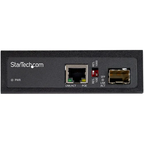 Industrial PoE Media Converter | 10/100/1000 Mbps | 60 Watts | Open SFP | DIN Rail MountableThis open SFP PoE fiber media converter offers an easy, inexpensive way to extend the reach of your data and power devices at remote locations using your network over fiber, using the SFP of your choice. It combines the data connectivity of a media converter with the flexible power supply capabilities of a PoE injectorIt converts a fiber network link to a PoE-enabled copper RJ45 Ethernet connection to provide data and power to remote PoE devices like security cameras, sensors, wireless, lighting, and more. The converter provides a powerful networking solution for campuses, warehouses, factories or any applications that require PoE and connectivity over long distances.Designed for Harsh EnvironmentsThis 60W media converter can be installed almost anywhere you need it as it has been engineered to work in environments with large temperature changes. The converter also includes a set of DIN mounting rails for additional installation options. OPERATING TEMPERATURE STORAGE TEMPERATURE -40°C to 75°C -40°C to 85°C -40°F to 167°F -40°F to 185°FUp to 60 Watts of Power for Connected Devices60 watts of available support a wide range of PD devices such as: Pan-and-Tilt Cameras Lighting Cameras Sensors WiFi Access PointsOpen SFP Slot to Leverage Your Current InfrastructureThe Gigabit fiber media converter provides a cost-efficient way to connect high powered devices over a fiber link. It features an open SFP slot that lets you choose the MSA compliant Gigabit SFP that best suits your fiber connection mode (single/multimode) and distance requirements.Dual Power InputsAccepts terminal block power or coaxial power connectors with the barrel plug adapter, allowing the product to be hardwired or powered using an external power supply (not included), which does not require professional installation.The IMC1GSFP60W is backed by a StarTech.com 2-year warranty and free lifetime technical support.The StarTech.com Advantage- EXTEND, CONVERT, POWER: Fiber to Ethernet media converter with PoE extends & converts fiber to RJ-45 copper; Provides up to 60W of PSE power to PoE/PoE+/PoE++ PD devices like cameras and sensors- TECH SPECS: 1 Gbps- 1 x Open SFP (MSA Compliant)