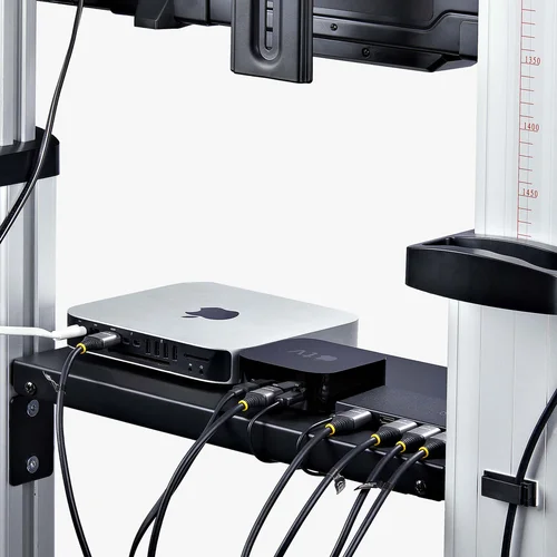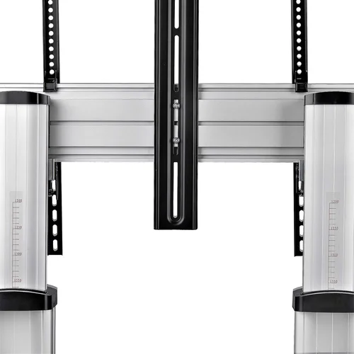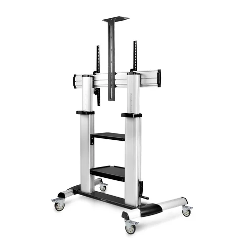 Create a portable media center with this height adjustable mobile TV cartThis height-adjustable rolling TV stand creates a mobile media center that can support 60 to 100-inch TVs and 220lb (100kg). Large casters enable users to move the mounted AV equipment with ease across an office, classroom, or trade show hall.Height-Adjustable via Hand CrankThe crank handle allows the user to adjust the height of the TV without tools, from 47.2 to 65 inches (1200-1650mm) helping to accommodate different viewing needs. Height adjustment is possible even when a TV is already mounted, and the height indicators at the back of the column enable precise adjustments. The crank handle can be removed or locked to prevent tampering.The +5°/-10° screen tilt aids with viewing angles or reduces glare from overhead lights or windows for optimal viewing comfort.Storage for AV DevicesFor increased portability and customization, this mobile trolley features two independently height-adjustable media shelves under the display that can support up to 11lb (5kg) each. The webcam shelf sitting at the top of the display can be raised up to 93.1" (2366) from the floor.Durable ConstructionThe heavy-duty TV stand's aluminum and steel construction makes it ideal for commercial use in environments with multiple users and frequent movement between areas. Handles at the back of the columns combined with the 4-inch casters enable smooth transportation across different locations. Once in place, all wheels can be locked. Base dimensions 44.8x27.5in (1138mmx700mm).The StarTech.com Advantage