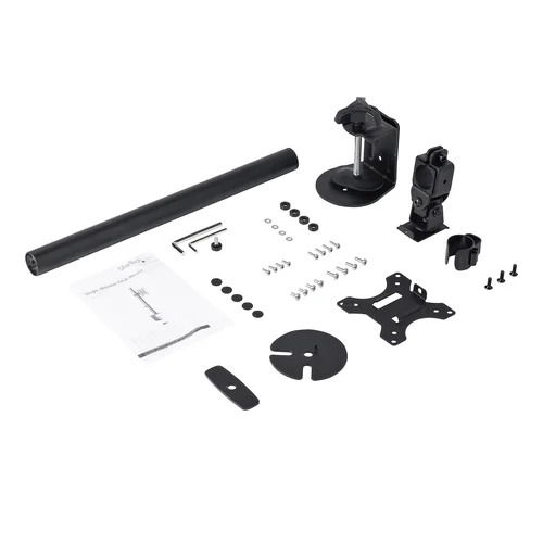VESA Monitor Mount | Desk/Grommet Mount | For up to 17.7lb MonitorsSave valuable desk space and position your monitor in a more comfortable viewing position. Constructed of high-grade steel, this monitor desk mount for up to 34" monitors makes it easy to suspend your display above your desk or other work surface.Work in Comfort While Saving Desk SpaceClear up your desk surface while creating an ergonomic workspace. This simple yet rugged single monitor mount supports displays 13" to 34" in size and up to 17.6 lb. (8 kg) in weight.Easy Height Adjustment Along the PoleWith the height adjustable monitor arm, you can also adjust the height of your monitor along the vertical pole to a maximum height of 17.3" (439 mm) to your desired position, to help reduce neck and eye strain.Adjust your Screen PositionEasily rotate, tilt and swivel, to adjust your screen position and find the perfect viewing angle.Rugged Steel ConstructionThe heavy duty monitor arm is made of steel for long-lasting performance. The surface finish features a powder coating to help resist scratches.Easy and Flexible InstallationThe desk clamp monitor mount makes it easy to mount a VESA mount compatible display above your desk, using the included C-clamp or grommet mount. A detachable VESA panel enables simple attachment of your monitor, then you just slide your monitor onto the mount. To help keep your work area free of clutter, the monitor mount also features cable management clips that keep your cables neatly out of sight.The ARMPIVOTV2 is backed by a StarTech.com 5-year warranty and free lifetime technical support.The StarTech.com Advantage