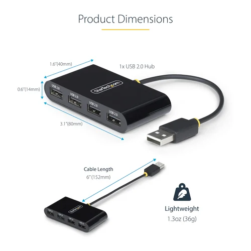 Connect multiple devices with the StarTech.com USB Hub 2.0, featuring 480 Mbit/s speed.
