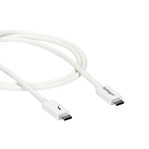 Provide twice the data transfer speed of any other cable type, enable full 4K 60Hz video, and power your devices with a single cableThis Thunderbolt™ 3 cable lets you connect to any Thunderbolt 3 port (USB-C™) to deliver video and data to your Thunderbolt, USB, and DisplayPort devices. Plus, the cable can provide power for charging your devices, and you can link up to six Thunderbolt 3 devices as part of a daisy-chained connection.Faster data transfers when connected to Thunderbolt devicesThis cable supports data transfer rates of 20Gbps when connected to a Thunderbolt 3 device, so you can transfer photo and video files at twice the speed of a USB 3.1 (10Gbps) cable. For example, you can transfer a 4K movie in less than a minute. When connected to a USB 3.1 device, the cable supports data transfer rates of 10Gbps.USB-C compatibleThe Thunderbolt 3 USB-C cable is fully compatible with all of your USB 3.1 Gen 2 devices and can be used for charging and syncing your mobile devices. You can also connect and power USB-C laptops, such as your MacBook Pro or Chromebook™, and USB-C peripherals, such as your portable drive or docking station.Full 4K videoThe cable supports full 4K 60Hz video and DisplayPort 1.2, and is compatible with existing DisplayPort displays. It's perfect for connecting your docking station or laptop to a monitor with astonishing resolution, contrast, and color depth for amazing detail.Versatile power deliveryThis Thunderbolt 3 cable delivers up to 100W of power for charging a laptop or powering a display, and 15W for bus-powered devices such as a hard drive enclosure.Thunderbolt networkingThe cable gives you an easy way to bridge multiple Thunderbolt 3 enabled laptops for peer-to-peer 10GbE networking. It’s perfect for setting up small workgroups and sharing peripherals such as printers and storage. You can also connect two Thunderbolt 3 laptops together for PC migrations.The TBLT3MM1MW is backed by a 2-year warranty.The StarTech.com Advantage