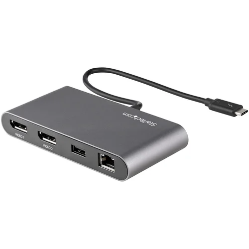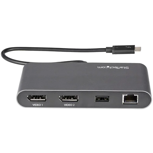 Laptop Docking Station | Mac & Windows® | Bus-Powered | 1x USB-AThis certified Thunderbolt™ 3 docking station is a compact mini dock, delivering essential connections for productivity. The bus-powered dock connects dual 4K DisplayPort displays, Gigabit Ethernet, and one USB-A (USB 3.2) port and for flexible set up, the attached Thunderbolt 3 cable has an extended length of (11 in./ 28 cm).Create a Dual-4K 60Hz WorkstationGreat for editing 4K video or other Ultra HD tasks, this portable Thunderbolt™ 3 to DisplayPort dock supports 40 Gbps of throughput and 4K resolution at 60Hz on dual DisplayPort monitors, through a single Thunderbolt™ 3 port. Run resource-demanding applications on two independent displays without draining system resources.Connect your laptop to:• 2x 4K DisplayPort (DP) displays (up to 4096 x 2160p @ 60Hz)Compact Size & 11-Inch Attached Host CableAt just 2.4" x 4.9" (6.1 cm x 12.4 cm), this dock takes up minimal room on your desk and in your laptop case. The dock's 28 cm (11 inches) attached cable provides extended reach to reduce port/connector strain on MacBooks and laptops on riser stands, or if needed, offers the flexibility to position dock further away from the laptop on your desk.The Ports You Need Most• 1x USB 3.2 Gen 1 Type-A port (5 Gbps)• 1x Gigabit Ethernet port (with PXE Boot and Wake-on-LAN support)Ideal for Power-Demanding Workstation SetupsAs many high powered, later generation laptops optimally require more than 100W of power to stay charged, some users prefer to use their laptop's power adapter vs. using their docking stations to keep laptops charged.This bus-powered TB3 mini dock is ideally suited for those users, providing full Thunderbolt™ 3 docking station performance and functionality, while their workstation laptops are separately charged."The StarTech.com Advantage
