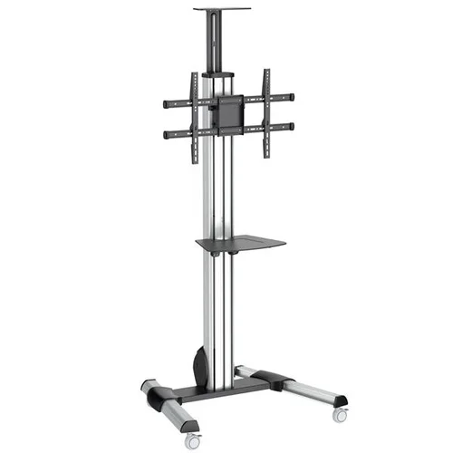 Mobile Display Mount | Multimedia Device Shelf | For 32" to 75" DisplaysThis portable TV cart makes it easy to create a mobile media center, providing a convenient and cost-effective way to share A/V equipment between rooms. Engineered with a sleek and sturdy design, the TV cart provides a secure mount for a 32" to 75" TV (with maximum weight of 88 lb./40 kg) and a removable multi-media shelf for placing your computer, media player or keyboard. It also includes a camera shelf for web-conferencing.Move Your Media Center from Room to RoomThe mobile TV cart saves you the cost of buying multiple flat-panel TVs. Simply roll the TV cart between boardrooms, classrooms and meeting rooms, to share your media equipment. The cart features a small footprint that enables you to stand close to the display, while delivering a presentation. You can also set up a display in your lobby during special events or set up a permanent display in areas where you can’t wall mount. The wheels are lockable for stationary use.Adjust Your Display with EaseWith the TV cart’s spring-assisted height adjustment, you can raise or lower the display mount with one smooth motion, from a minimum height of 3.6 ft. (1110 mm) to a maximum height of 4.9 ft. (1510 mm) - a lift of up to 15.7 in. (40 cm). The TV mount rotates up to 90 degrees, so you can change the position of your display from landscape to portrait. You can also tilt your TV +5 to -12 degrees, to find the optimal viewing angle.Durable ConstructionThe TV cart’s durable construction makes it ideal for commercial use, in environments with multiple users and frequent movement between meeting areas. Built-in cable management keeps your cables organized and hidden from view.The STNDMTV70 is backed by a StarTech.com 5-year warranty and free lifetime technical support.The StarTech.com Advantage- Easily share displays between rooms, by mounting a 32" to 75" flat-screen TV to this mobile TV cart- Smooth spring-assisted height adjustment up to 15.7" (400 mm)- Multimedia device shelf for web conferencing and other applications; Wheels for easy mobility, also lockable for safety