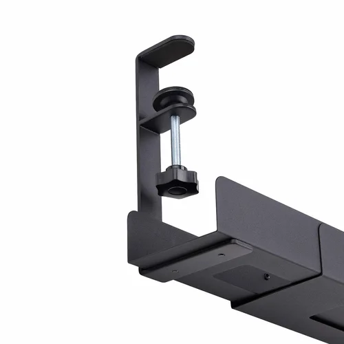 Streamline cable management with this under-desk cable organizer trayThis under-desk cable management tray helps keep workspaces organized and free of clutter, reducing the risk of tripping hazards and tangled cords.Extra-Large TrayThe extra-large tray is 4.1inches (105mm) wide and has additional headspace between the desk and the tray to accomodate larger power adapters or power bars/strips.Length Adjustable DesignThe cable manager tray is length adjustable, offering three different lengths (2.6ft, 3.3ft, and 3.9ft / 0.8m, 1m, and 1.2m) to match the desk size and the distance cables need to be routed. All necessary hardware for length adjustment and product installation is included.Versatile SetupThis cable organizer works with desks of any material, including wood, glass, and metal, from 0.2inches (5mm) to 2inches (50mm) thick. Cable management slots improve accessibility and enhance workspace aesthetics by keeping cords neatly routed, contributing to better airflow.No Drilling RequiredThe organizer tray features a clamp-on installation, allowing for a tool-free setup with no drilling required. This makes it ideal for quick repositioning without damaging the desk. Foam padding protects the desk surface, while rubber on the clamp prevents slipping when attached.Durable ConstructionBuilt from powder-coated steel, the tray is durable and resistant to scuffs and damage. It remains stable even when fully extended over long periods of time. The ISTA-6 certified packaging ensures the product can withstand various transportation conditions and handling processes.The StarTech.com Advantage