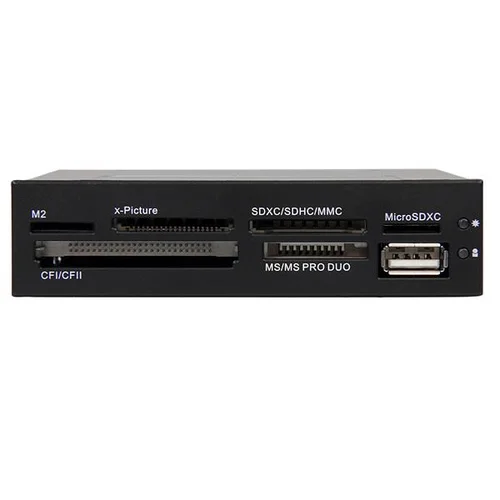Add front panel access to 22 different types of flash memory cardsThe 35FCREADBK3 3.5" Multimedia Card Reader offers quick and easy access to the most popular flash card formats, from the front panel of almost any desktop computer.Suitable for quickly accessing memory cards from virtually any portable media device (e.g. digital cameras, MP3 players, etc.), this versatile media card reader supports 22 of the most popular card types, including: Compact Flash (CF type I), Secure Digital (SD/miniSD/microSD/SDHC/SDXC), MultiMediaCard (MMC/RS-MMC/HS-MMC/MMCmobile/MMCplus/MMCmicro/HC-MMC), MemoryStick (MS/MS Duo/HS-MS/MS PRO/MS PRO Duo/MS PRO-HG Duo/MS-ROM/M2), and xD Picture cards, this reader is ready to handle the memory cards from virtually any portable device from cameras to music players.The card reader also allows simultaneous access to multimedia card types (excluding same type media), allowing you to copy files from or between different cards at the same time.Backed by a StarTech.com 2-year warranty and free lifetime technical support.The StarTech.com Advantage- Able to read all of the popular memory card formats, from a single reader, via an internal USB connection- Guaranteed reliability, with a StarTech.com 2-year warranty and free lifetime technical support