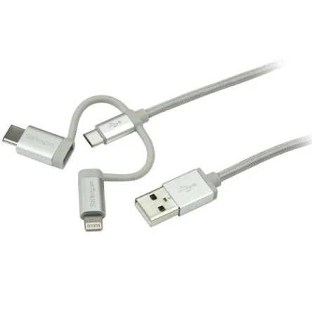 StarTech.com USB 2.0, Male USB A to Male Lightning, Micro USB B, USB C, 480Mbps, 1m - LTCUB1MGR