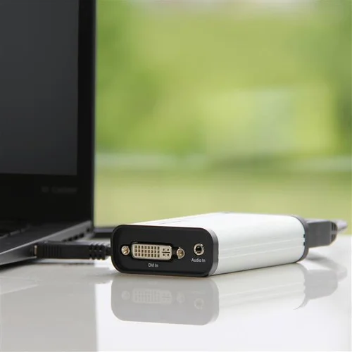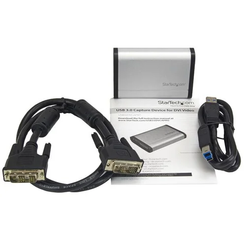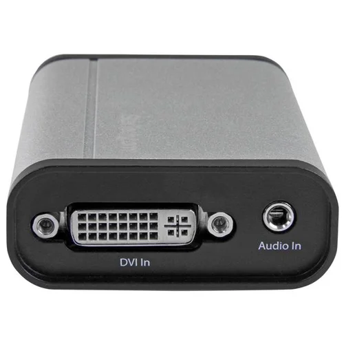 Record DVI video to your computer, and embed a 3.5mm audio source, at 1080p 60fps resolutionThis DVI to USB 3.0 video capture device records high-definition DVI video to your computer. With an aluminum enclosure, this device is built strong for fixed-location or on-the-go capture. It offers a separate 3.5 mm audio input for accompanying audio or voice-overs, and a DVI pass-through port for connecting a monitor to review the video as it’s captured.Capture HD video at 1080p 60fpsRecord 1080p video at 60fps (frames per second), to save your content so it can be shared, stored, or edited. Capture from security equipment, control rooms, medical, or other industrial DVI devices, directly to your computer.Easy video recording on Windows and MacThe included software makes recording easy. Using a widely adopted codec, videos saved in StreamCatcher™ work with almost any video player and require no converting or editing.Live stream on WindowsOn Windows, you can live broadcast your video over the internet, using Twitch™ or other third-party video streaming platforms, with the included software.DirectShow compatibility on WindowsWith this capture device, you’re not tied to the included software. You can record raw/lossless video using any third-party DirectShow™ compatible software, such as Open Broadcaster Software (OBS).Capture video from HDMI®, VGA or DVI devicesThis versatile DVI capture device works with HDMI to DVI and VGA to DVI adapters, so you can record video from an HDMI or VGA source.The StarTech.com Advantage