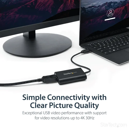 USB 3.0 External Video & Graphics Card | Multi-Monitor | USB-Powered | Supports Windows®This USB to DisplayPort adapter lets you connect your computer to a 4K DisplayPort monitor using a USB 3.0 Type-A port, even if your computer doesn't support 4K video.Increase your productivity by adding a 4K displayThis USB to DP adapter can boost your productivity by providing more screen space to work with. Having multiple displays gives you the freedom to access two full-screen applications simultaneously, enabling you to reference material on one display while composing on another. The adapter even supports display rotation for a vertical screen that's ideal for viewing spreadsheets, newsfeeds or stock tickers.Easy-to-installThe multi-monitor adapter is powered by your computer's USB Type-A port, so you won't need to connect a bulky external power adapter. Plus, the drivers install quickly and easily and only need to be installed once, regardless of how many USB video adapters you want to connect.Get astonishing picture quality with 4K videoEven if your system doesn't natively support 4K video output, this USB video adapter lets you enjoy the picture quality of Ultra HD video. With support for 4K at 30Hz, you get sharp and crisp picture quality that's richer and more true-to-life than traditional HD, with far greater detail in both darker and brighter images.The USB32DPES2 is backed by a 3-year StarTech.com warranty and free lifetime technical support.The StarTech.com Advantage