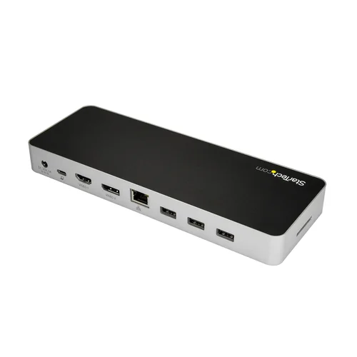 Add dual monitors (4K HDMI® & 4K DP), an SD card reader, multiple USB ports, GbE, and audio to your laptop, plus power and charge your laptopThis dual-monitor USB-C™ dock transforms your MacBook or Windows® laptop into a dual Ultra HD 4K workstation, with support for 4K DisplayPort and HDMI monitors. It gives you all the connections to create a fully capable workstation, including an SD™ card reader slot.The USB-C docking station features USB Power Delivery 2.0 (60W), to power and charge your laptop as you work. It’s the perfect companion for your MacBook Pro or other Thunderbolt™ 3 equipped laptop.Create a dual-4K video workstationThe USB-C dock expands the display capabilities of your laptop across two Ultra HD 4K monitors. It enables DisplayLink® and USB-C DP Alt Mode to allow dual 4K video output to HDMI and DisplayPort 4K monitors. With the dual-4K dock, you can connect:• 1x 4K DisplayPort display at 3840 x 2160 resolution @ 30Hz• 1x 4K HDMI display at 3840 x 2160 resolution @ 30HzSD™ card readerThe dock provides direct access to your SD memory cards or microSD™ cards (with adapter). The SD card slot can also be used for additional storage and backup through macOS X Time Machine or Windows 10 File History.Ample connectionsThe dock provides four USB 3.0 (Type-A) ports to connect your peripherals, including a USB 3.0 fast-charge and sync port, a Gigabit Ethernet port, and combined 3.5 mm audio and microphone port.Universal supportCompatible with Mac and Windows, this universal dock works with USB-C and Thunderbolt 3 enabled laptops. Connected Device Transparency with the StarTech.com MAC Address Changer UtilityThe DK30CHDPPDUE, includes a free Windows® application that enables you to better manage your enterprise network security. When you connect to your network through the ethernet port of the dock, the computer’s MAC address is typically not broadcast to the network, as your network only sees the MAC address of the docking station. However, the StarTech.com MAC Address Changer or Cloning software enables the USB-C dock to use MAC address spoofing of the connected Windows laptop rather than the MAC address of the dock itself. This ensures your network administrators have full visibility of each device on the network and can monitor and limit activity accordingly. To request access to our MAC Address Changer utility, please contact our Technical Support Department by phone, live chat , or e-mail . The DK30CHDPPDUE is backed by a StarTech.com 3-year warranty and free lifetime technical support.The StarTech.com Advantage