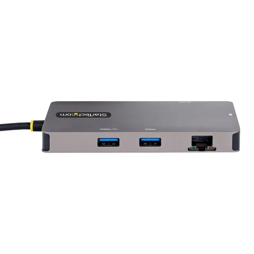 Portable Docking Station | Up to Dual-4K 60Hz | GbE | SD & MicroSD Card Readers | Thunderbolt™ 3 & 4 CompatibleThis USB Type-C Multiport Adapter with DP 1.4 Alternative Mode, DSC and MST, supports dual-HDMI® (HDR) video with resolutions of up to 4K 60Hz uncompressed video. The mini travel dock turns your Dell XPS, Lenovo X1 Carbon, HP Elite/ProBook, or other USB-C laptop into a workstation, anywhere you go. The USB-C docking station provides dual HDMI outputs, a 2-port USB 3.2 Gen 1 Type-A (5Gbps) Hub including a BC 1.2 port to power and charge a USB peripheral, SD and MicroSD card readers, and a Gigabit Ethernet port, all through one connection to your laptop's USB-C or Thunderbolt 3/4™ port. In addition, it offers advanced charging through USB Power Delivery (PD) 3.0 pass-through via an integrated 12-inch (30 cm) USB-C host cable, for more set up flexibility.High-Performance Dual-HDMI Video via MSTThe compact docking station connects your laptop to two HDMI monitors, creating a powerful workstation. It supports DP 1.4 Alt Mode with DSC and MST, for uncompressed video performance up to dual 4K (3840 x 2160p) at 60Hz, depending upon your host computer. The dock also supports the use of ultrawide monitors.Video performance, such as resolution and refresh rate across both monitors, is dependent upon your host computer and its video controller. A source device with support for DisplayPort 1.4, paired with DSC and DP 1.4 enabled HDMI displays, are required to achieve dual 4K 60Hz. Please review the specifications of your computer and displays, to determine expected video performance. StarTech.com performs rigorous performance benchmarks with all major computer models. The video performance results of our testing are listed below:Dual DisplayHost ComputerModelMonitor #1Maximum ResolutionMonitor #2Maximum ResolutionLenovo X1 Carbon G93840x2160@60Hz3840x2160@60HzHP EliteBook 850 G83840x2160@60Hz3840x2160@30HzDell XPS 93102560x1600@60Hz2560x1600@60HzSingle DisplayHost ComputerModelMonitorMaximum ResolutionDell XPS 93103840x2160@60HzLenovo X1C G93840x2160@60HzHP EliteBook 8503840x2160@60HzHP ProBook 450 G83840x2160@60HzSurface Laptop 33840x2160@60HzDell G5 SE (AMD)3840x2160@60HzConnect Your DevicesThe USB-C to USB 3.2 Gen 1 (5Gbps) hub provides two USB-A ports for connecting your USB devices.Multiple Use CasesA versatile dock solution for use at your office desk, home office, hotel desk, or in the boardroom. It's portable enough to be carried in your bag / backpack for mobile use. The USB-C dock can operate with bus-power alone, , or with a USB-C power adapter connected to the pass-through port - for full laptop and peripheral charging. The lightweight docking station features a built-in 12 in (30 cm) USB-C host cable.Built-In SD Card ReaderAccess your multimedia content with ease. The multiport adapter provides direct access to your SD / SDHC™ / SDXC™ or microSD (uSD) memory cards.Charge Your Laptop and PeripheralsWith support for USB PD 3.0 (up to 100W), the USB Type-C multiport adapter enables you to power and charge your laptop and a USB peripheral, when a USB-C power adapter is connected to the pass-through port. PD 3.0 features Fast Role Swap (FRS) which prevents USB data disruption when switching power sources (e.g., USB-C power adapter to bus power).Reliable Network ConnectivityThe Gigabit Ethernet port ensures reliable wired network access. Support for WoL allows you to boot the host computer from a remote location.Enhance Productivity and Device Management with the StarTech.com Connectivity Tools ApplicationDeveloped to improve performance and security, StarTech.com Connectivity Tools is the only software suite on the market that works with a wide range of IT connectivity accessories. The software suite includes:•Advanced Windows Layout Utility : To setup and save custom windows layouts.•MAC Address Pass-Through Utility : To improve network security.•USB Event Monitoring Utility : To track and log connected USB devices.•Wi-Fi Auto Switch Utility : Enable users to quickly access faster network speeds via wired LAN.For more information and to download the StarTech.com Connectivity Tools application, please visit: www.startech.com/connectivity-toolsThe 120B-USBC-MULTIPORT is backed by a StarTech.com 3-year warranty and free lifetime multilingual technical support.The StarTech.com Advantage