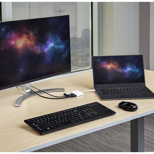 Connect your USB-C laptop to a 4K HDMI monitor and charge simultaneously with this compact multiport adapter.