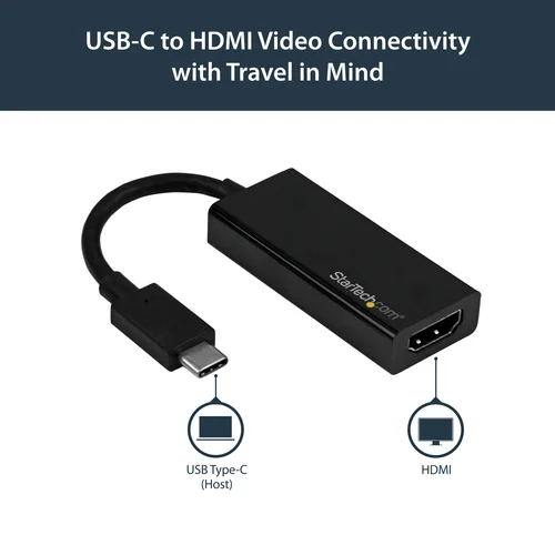 Connect your MacBook, Chromebook or other USB Type-C laptop to an Ultra HD 60Hz display or projectorThis USB-C™ to HDMI® adapter lets you output HDMI video and audio from a USB Type-C™ device, such as a USB-C equipped MacBook, with support for Ultra HD 4K at 60 Hz. This adapter works with USB-C devices that pass a DisplayPort video signal, and it's also compatible with Thunderbolt™ 3 ports.Astonishing Picture QualityThe adapter lets you harness the video capabilities that are built into your USB Type-C connection, to deliver the astonishing quality of UHD to your 4K 60 Hz display. This makes it easier for you to multitask, while working on the most resource-demanding applications imaginable. With this adapter, you can achieve an output resolution of up to 3840 x 2160p at 60 Hz, which is perfect for performing high-resolution tasks such as viewing 4K video. Plus, the adapter is backward compatible with 1080p displays, which makes it a great accessory for home, office or other workspace applications.Ultimate PortabilityThis USB Type-C video adapter is highly portable, with a small footprint and a lightweight design. The adapter is the perfect accessory for your new slim USB-C device, fitting easily into your laptop bag or carrying case, which is great for BYOD (Bring Your Own Device) applications at the office.Hassle-Free Connection with USB Type-CThis adapter lets you utilize the versatile USB Type-C port on your portable device. USB Type-C is a reversible connector, so it doesn't matter which way you plug it in. The reversible connector means you will always plug it in correctly on your first try, saving you the hassle and distraction of repeatedly attempting to connect your laptop to a display or projector, while you're delivering a presentation or speaking to a group.The CDP2HD4K60 is backed by a 3-year StarTech.com warranty and free lifetime technical support.Note:• Your USB-C equipped device must support video to work with this adapter.• This product may experience display detection issues with certain models of Mac. If you’re experiencing issues please contact our technical support. For hassle-free compatibility with Mac we recommend CDP2HD4K60H.The StarTech.com Advantage